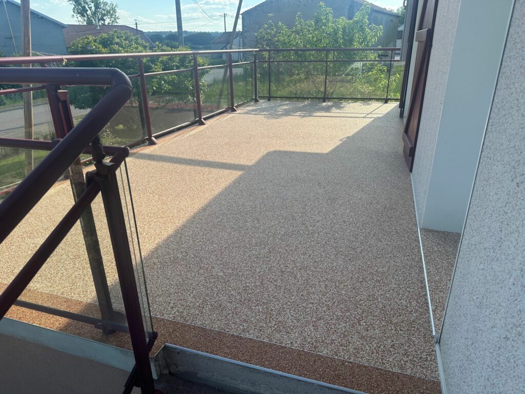 La cure de jouvence : Tous les 2 à 3 ans, selon l’exposition et l’intensité d’usage, une légère couche de résine de rafraîchissement peut être appliquée pour redonner l’éclat du neuf à votre terrasse.