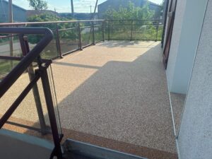 L’élasticité : Une terrasse extérieure “bouge” (dilatation thermique). La résine doit être suffisamment souple pour accompagner ces micro-mouvements sans fissurer, tout en étant assez dure pour résister au poinçonnement (pieds de chaises, talons).